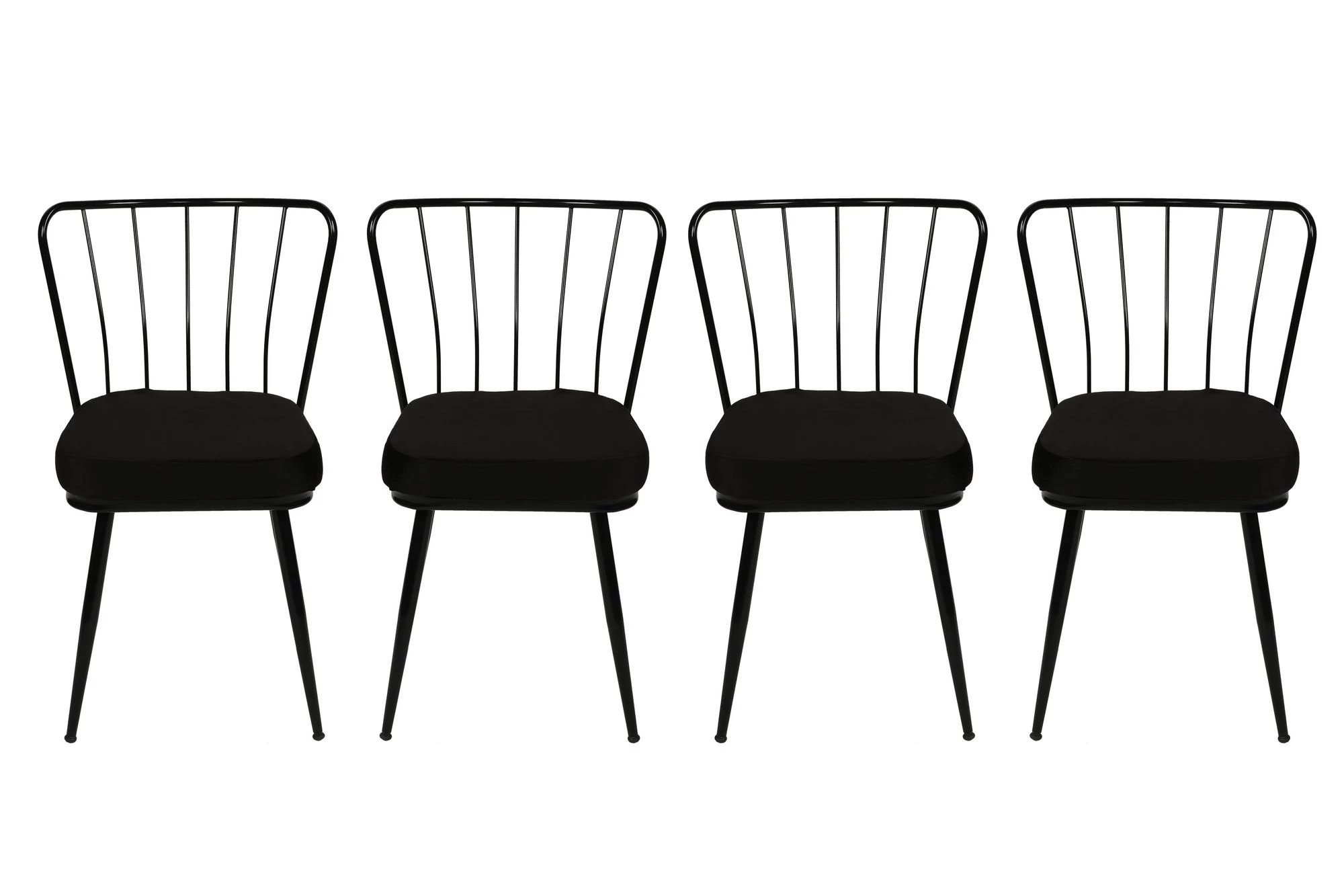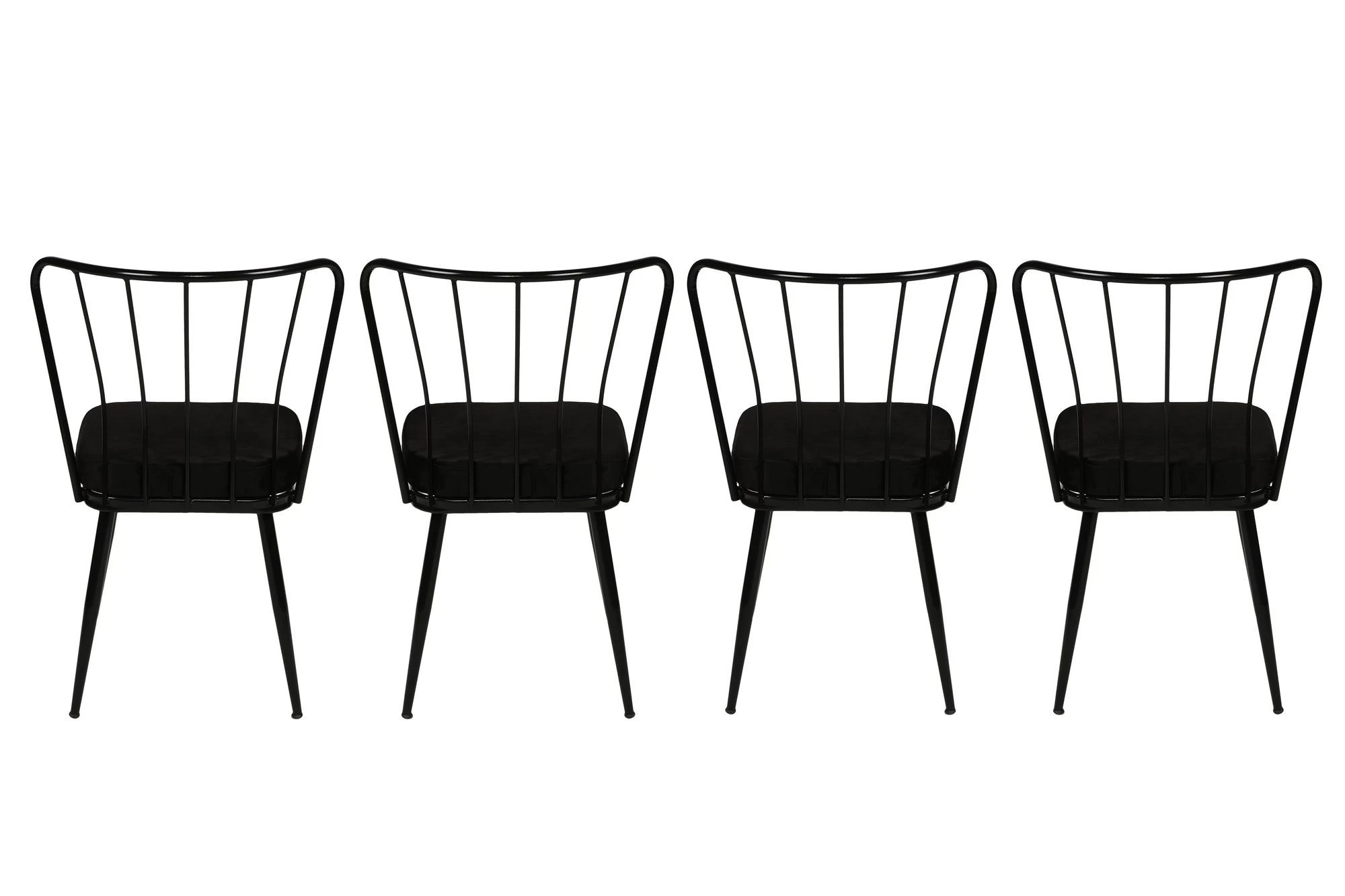Kieran 4-Piece Metal Chair Set | Velvet Fabric And Metal | Black