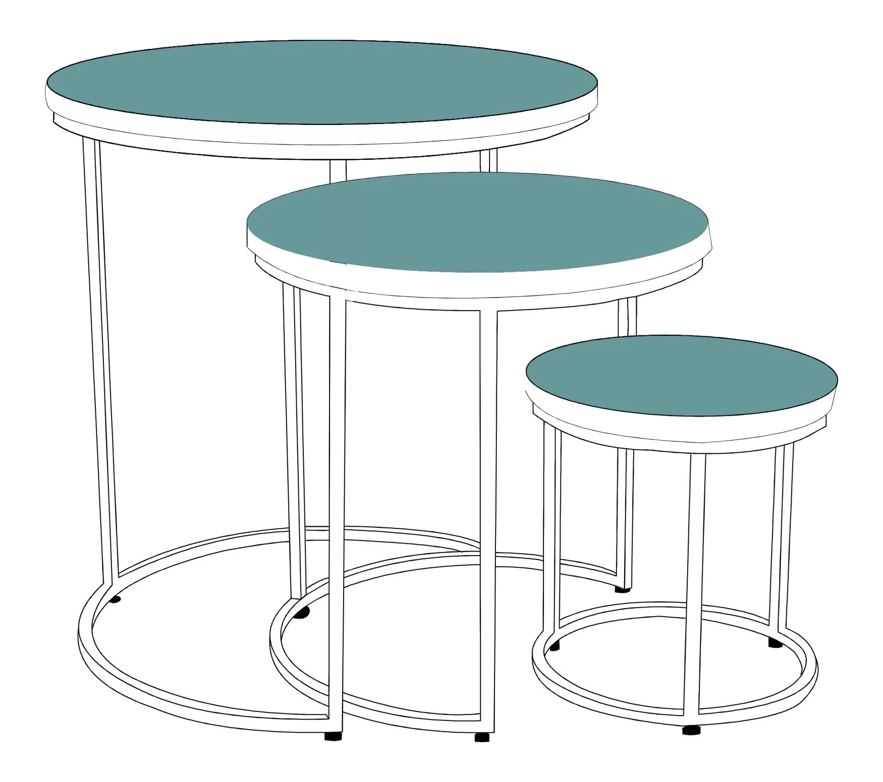 Ces 3 tables gigognes sont réalisées en métal en panneaux de particules. Les plateaux sont décorés d’un joli motif en bois. Ces tables d’appoint s’utilisent également indépendamment.