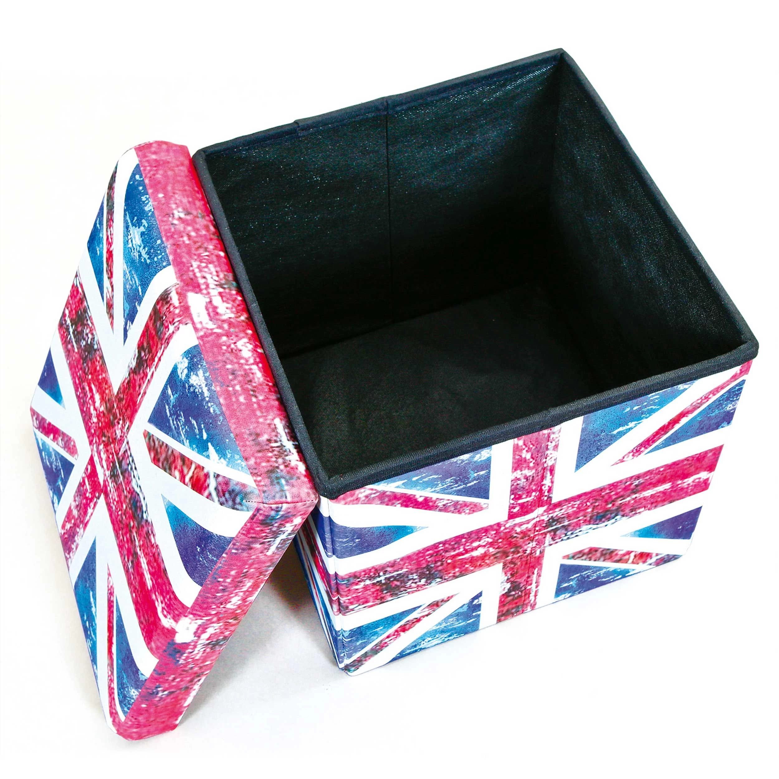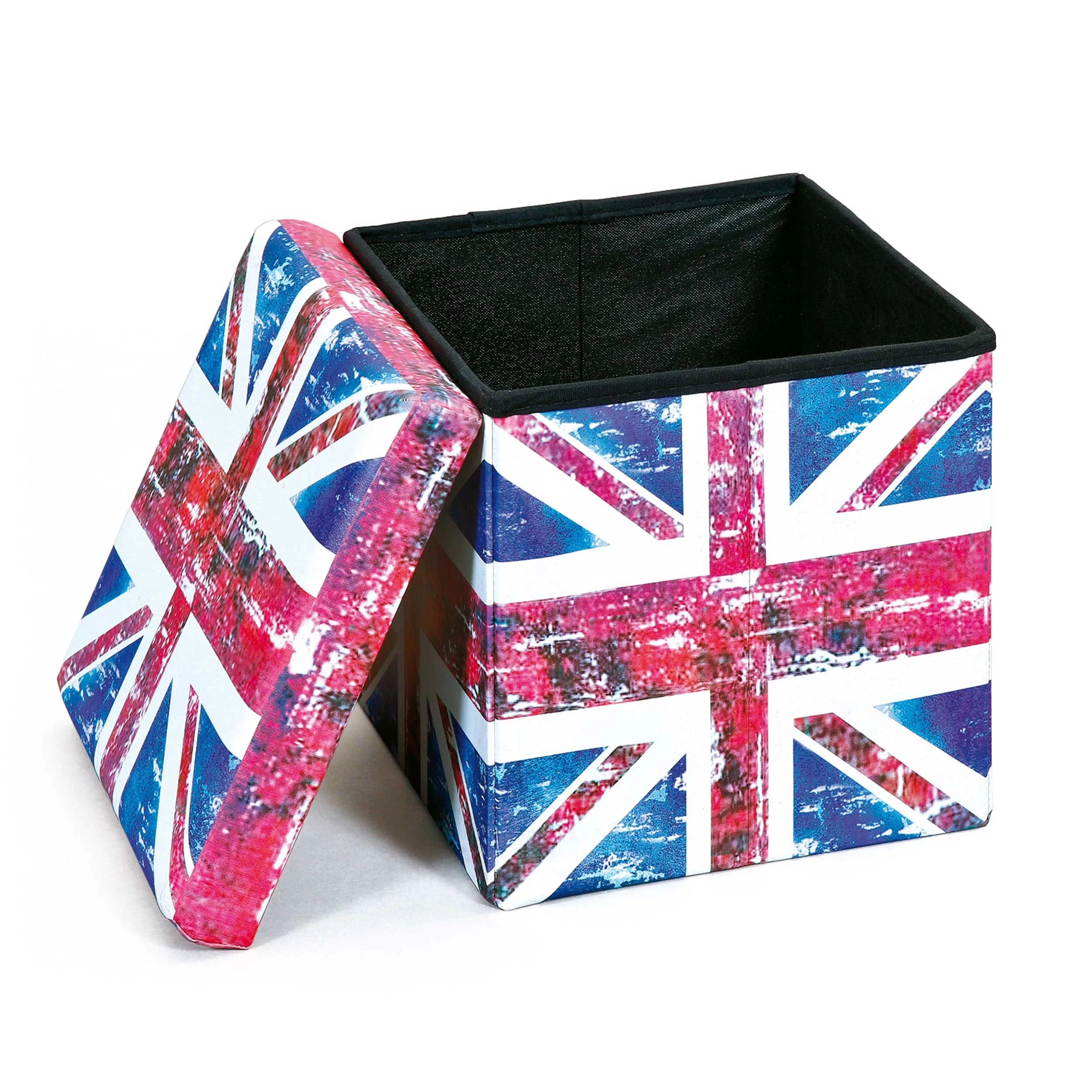 Ce repose-pieds pliable convient à tous ceux qui aiment les meubles au design multifonction. En effet, vous pouvez utiliser ce repose-pieds comme pouf et comme boîte de rangement. Fait en MDF, cet accessoire est revêtu de PU. De plus, tous les côtés sont décorés de l’Union Jack. Également disponible en d’autres coloris.