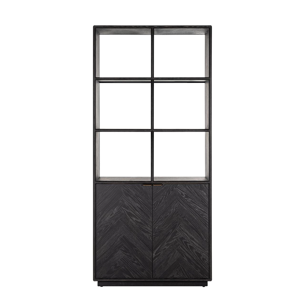 RICHMOND Bibliothèque Bony 100cm 2 Portes Motif à Chevrons – Noir/or Brossé