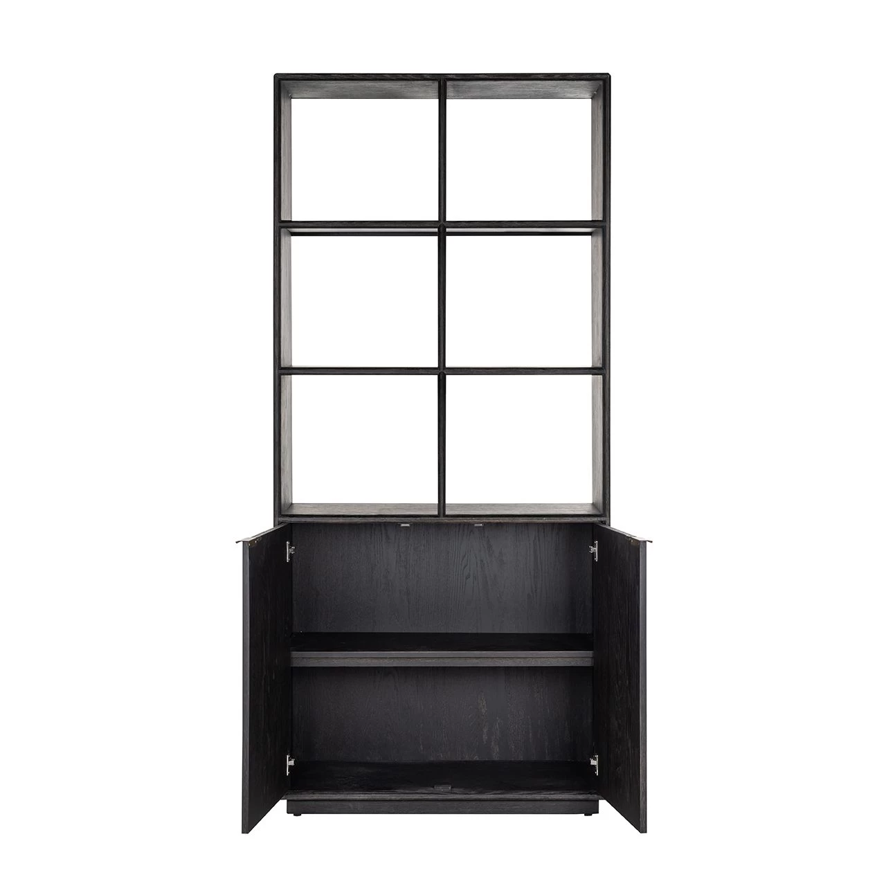 La bibliothèque Bony fait partie de la vaste collection en chêne noir avec un cadre doré en métal. Cette combinaison crée un look particulièrement raffiné dans votre intérieur. Cette bibliothèque robuste est équipée de deux portes et de quatre étagères. Vous disposez ainsi d’un espace de rangement à la fois fermé et ouvert, où vous pouvez ranger vos livres préférés ou de belles décorations. Les poignées détaillées des portes donnent au meuble un cachet supplémentaire. Vous pouvez facilement intégrer ce meuble élégant et robuste dans votre salon ou votre bureau. Découvrez les différents autres meubles de salon de cette collection chez Emob !