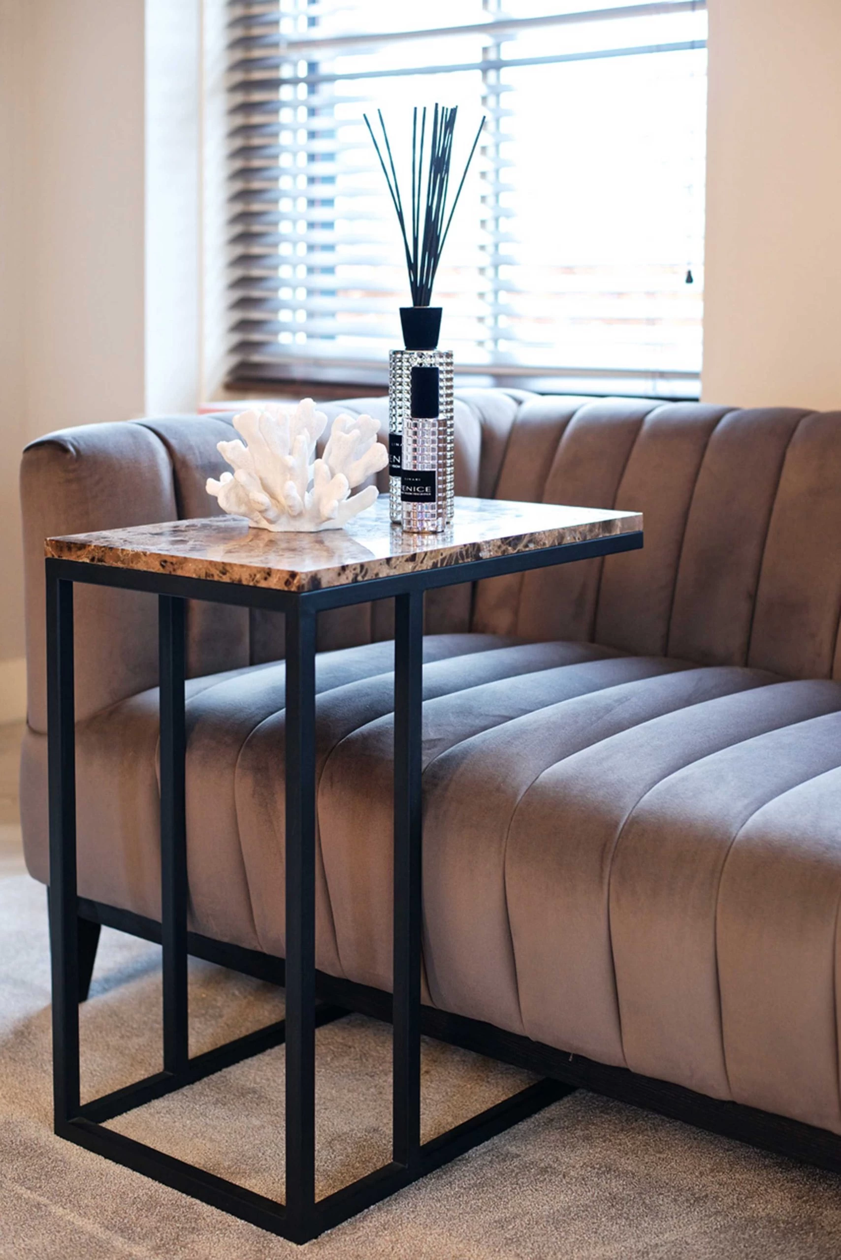 La table d’appoint Orry combine un cadre noir élégant avec un plateau en faux marbre Emperador. Cette couleur brune aux différents tons crée un design agréable et moderne. Grâce à cette collection, vous apportez une touche de luxe à votre intérieur. Vous pouvez l’utiliser dans votre canapé pour poser une boisson ou votre ordinateur portable.