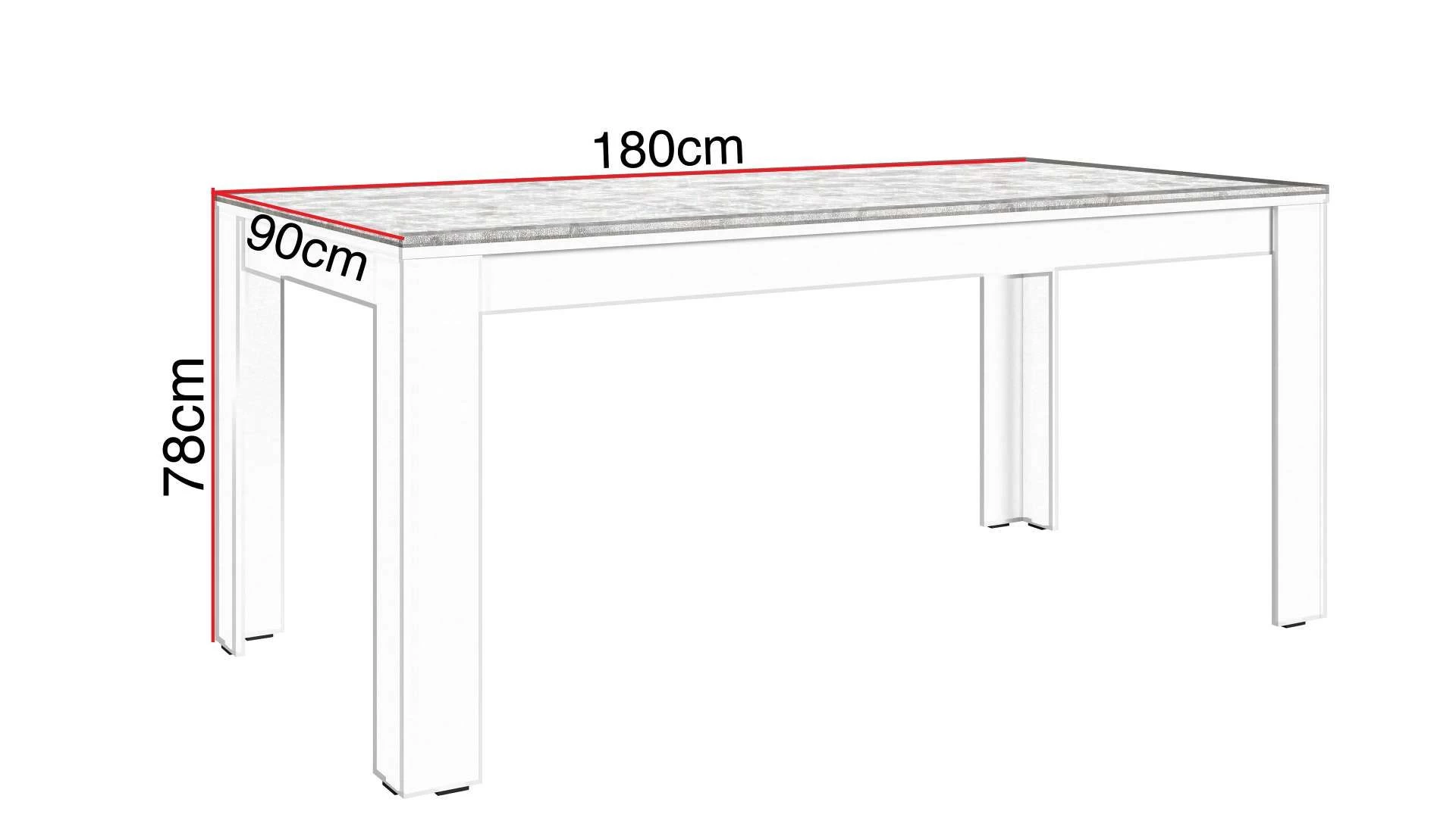 Les meubles de la collection Alexi se caractérisent par la combinaison de blanc et un décor de béton. Cette table à manger est également un meuble moderne à placer dans votre salle à manger. Elle est fabriqué en aggloméré écologique de haute qualité. Comme la table mesure 180 cm de long, elle peut facilement accueillir six personnes.