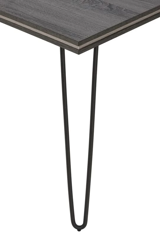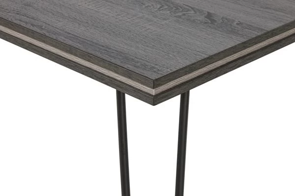 Cette table à manger rectangulaire se compose d’un plateau en aggloméré avec un décor en chêne gris foncé et des pieds en métal noir. Vous pouvez parfaitement intégrer cette table à manger dans différents intérieurs grâce à son design simpliste. Avec une longueur de 180 cm et une largeur de 90 cm, cette table convient à quatre personnes.