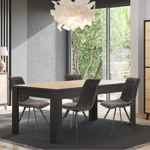 Cette table à manger Wiva, d’une longueur de 180 cm, permet à 6 personnes de profiter d’un repas délicieux. La table est fabriquée en aggloméré avec des pieds noirs et un plateau en décor bois. Complétez votre salon avec les autres meubles de la collection WIva.