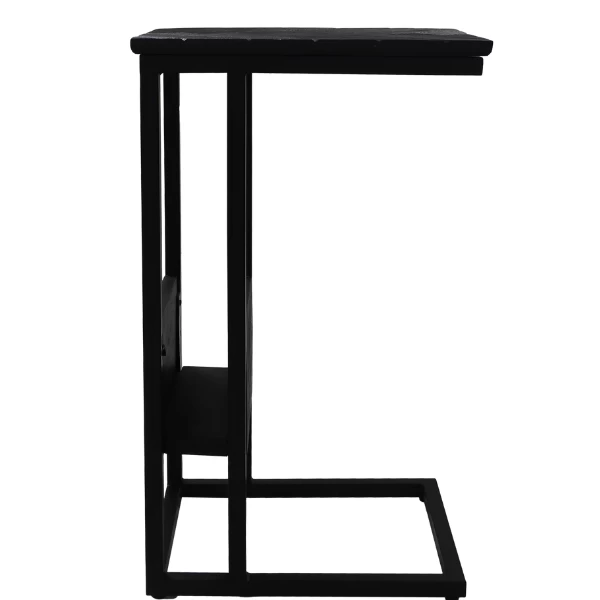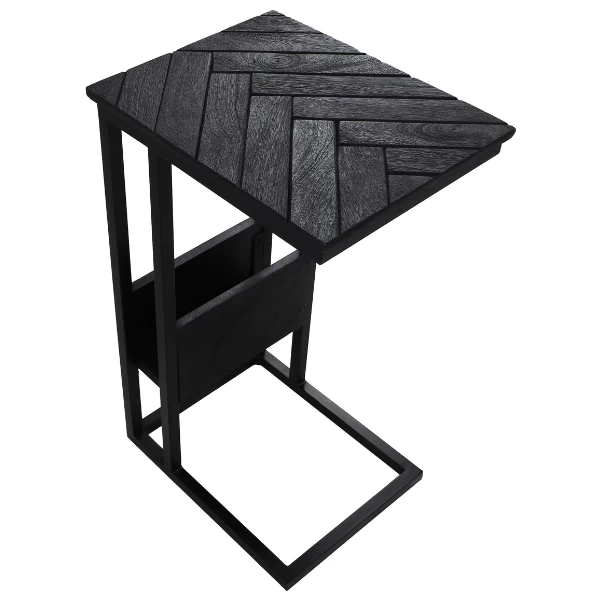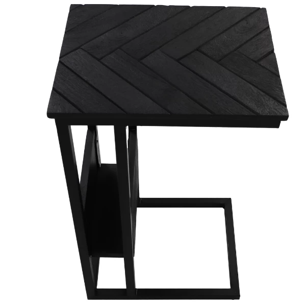 Cette table d’appoint au design luxueux s’intègre parfaitement dans un intérieur épuré et industriel. Le mobilier est composé de bois de manguier et d’un cadre métallique robuste. Les pieds peuvent facilement être glissés sous d’autres meubles, et la table dispose d’un compartiment de rangement pratique pour les magazines. Le plateau de la table est fini avec une façade en bois de manguier noir avec un motif à chevrons.