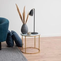 Table D’appoint Dejan ø50cm – Or/marbre Blanc