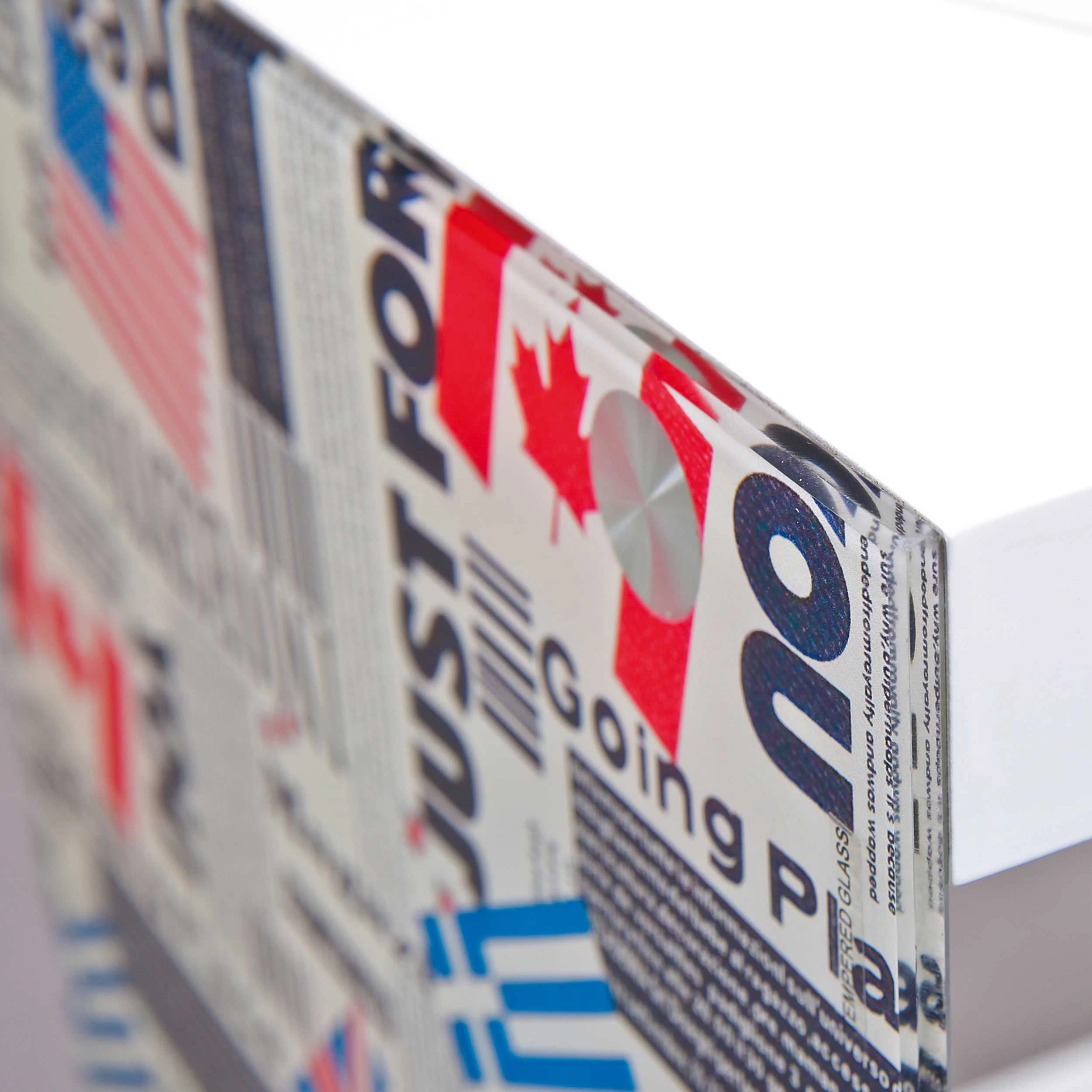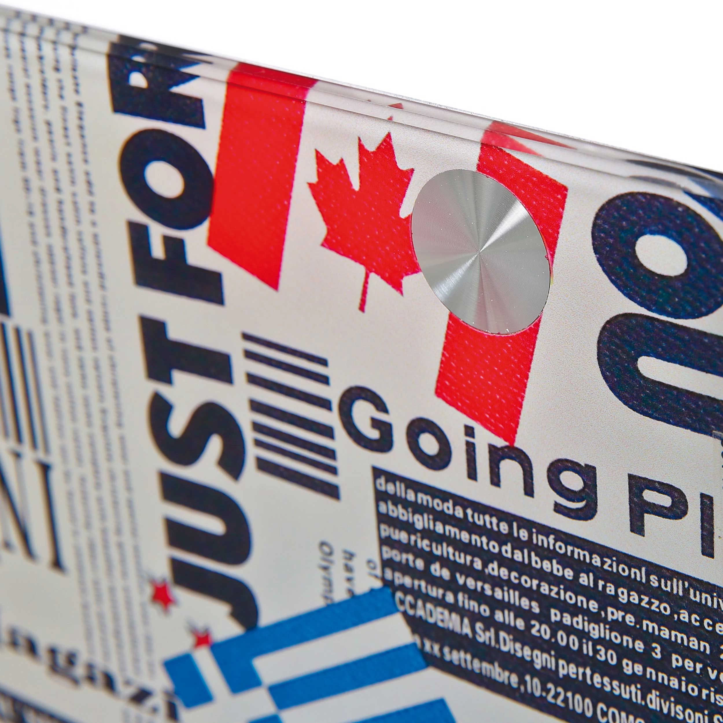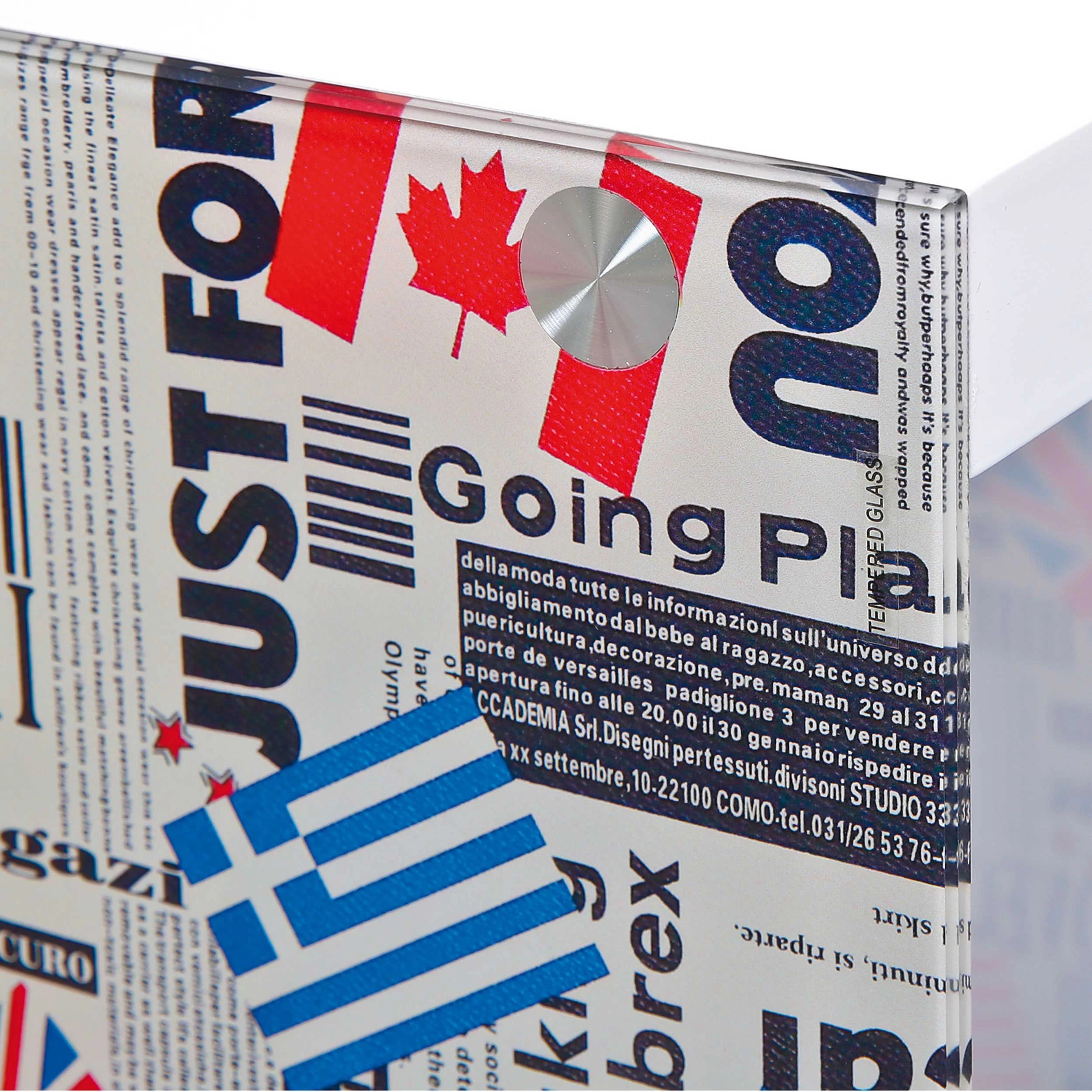 Cette table d’appoint pratique est réalisée en MDF et verre de sécurité. Les 4 roulettes vous permettent de la déplacer facilement. Le verre de sécurité est décoré de drapeaux des pays tels que les Etats-Unis, le Royaume-Uni, le Canada et la Grèce. C’est un joli accessoire qui trouvera sa place partout dans votre séjour ou appartement.
