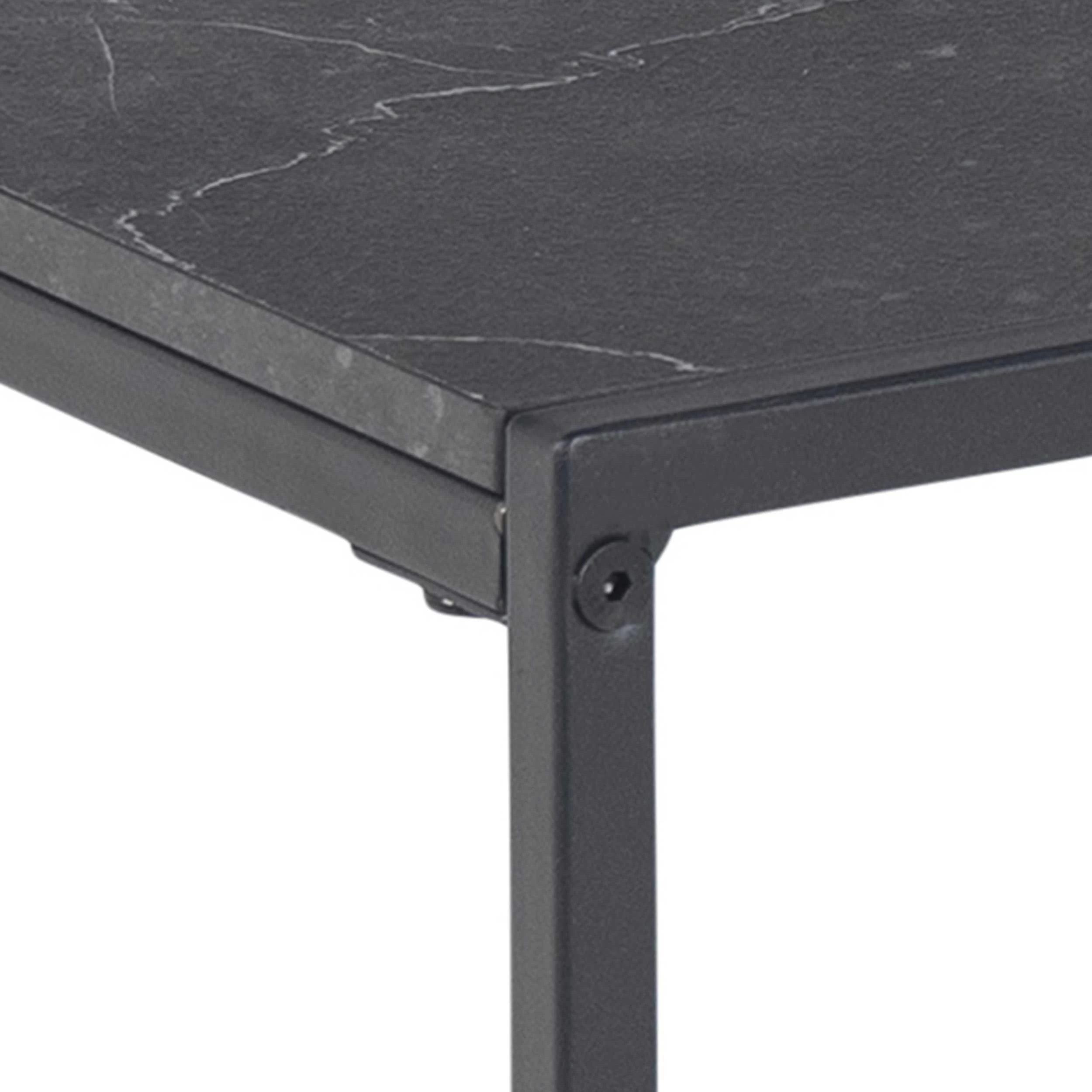 Apportez une touche de luxe à n’importe quelle pièce sans vous ruiner avec la table d’appoint Idris.Elle apportera du cachet à la pièce grâce à son plateau avec décor en marbre. Le plateau est doté d’une finition en mélamine, les pieds noir mat sont réalisés en métal.