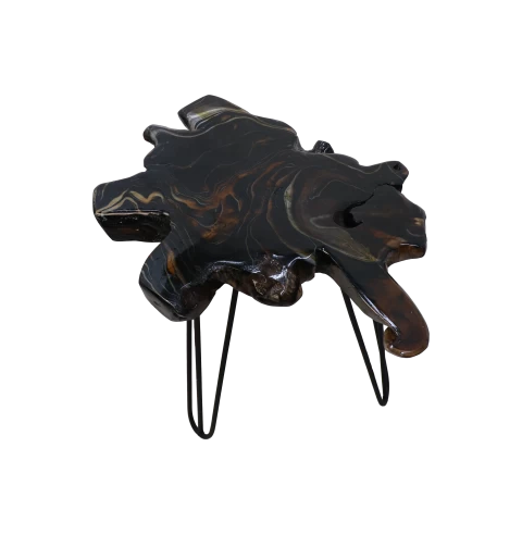 Table D’appoint Lilianne Bois De Teck Tronc D’arbre-noir/époxy