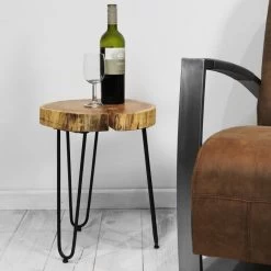 Table D’appoint Live Edge Moyen (tronc D’arbre)-acacia/fer