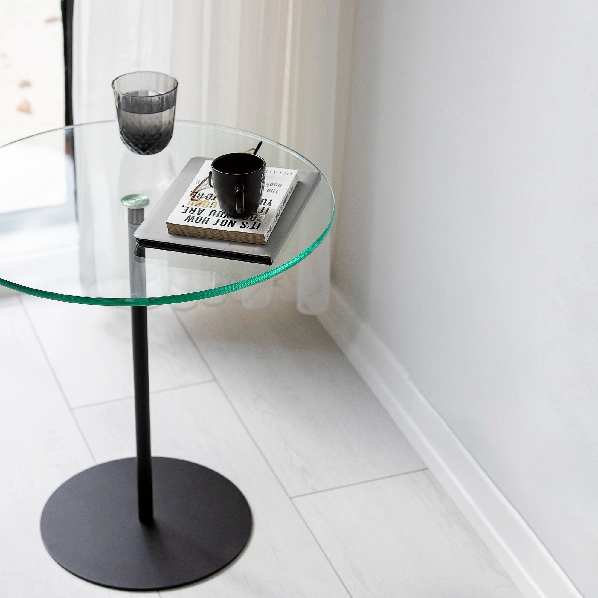 Table D’appoint Locelso | 100 % Verre Trempé Et Structure Métallique | 50x50x50 Cm | Noir