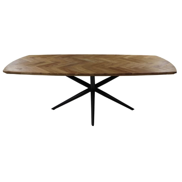 Table De Salle à Manger Fishbone 180x100cm Chêne Motif à Chevrons – Naturel/noir