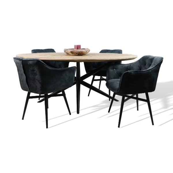 Cette table de salle à manger Luzern se compose d’un plateau de table en bois d’acacia massif. L’acacia est un bois dur durable qui est utilisé pour la fabrication de meubles depuis très longtemps. Le plateau de la table a une épaisseur de 38 mm et est fini avec un bord swiss edge. Le plateau de la table est également traité, ce qui le rend facile à entretenir. Il y a de la place pour 8 personnes.