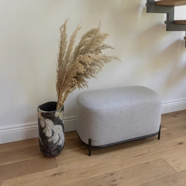 Bien que vous rencontriez rĂ©gulièrement un pouf dans les magasins et en ligne, il ne s’agit qu’exceptionnellement d’un pouf oblong. C’est prĂ©cisĂ©ment ce qui rend ce pouf si amusant et unique ! Ce pouf a une longueur de pas moins de 82 cm, ce qui le rend appropriĂ© pour deux adultes ou trois enfants. Il est tapissĂ© de tissu gris et possède des pieds en mĂ©tal noir. Ce pouf peut facilement ĂŞtre combinĂ© avec les autres poufs de la collection Larry.