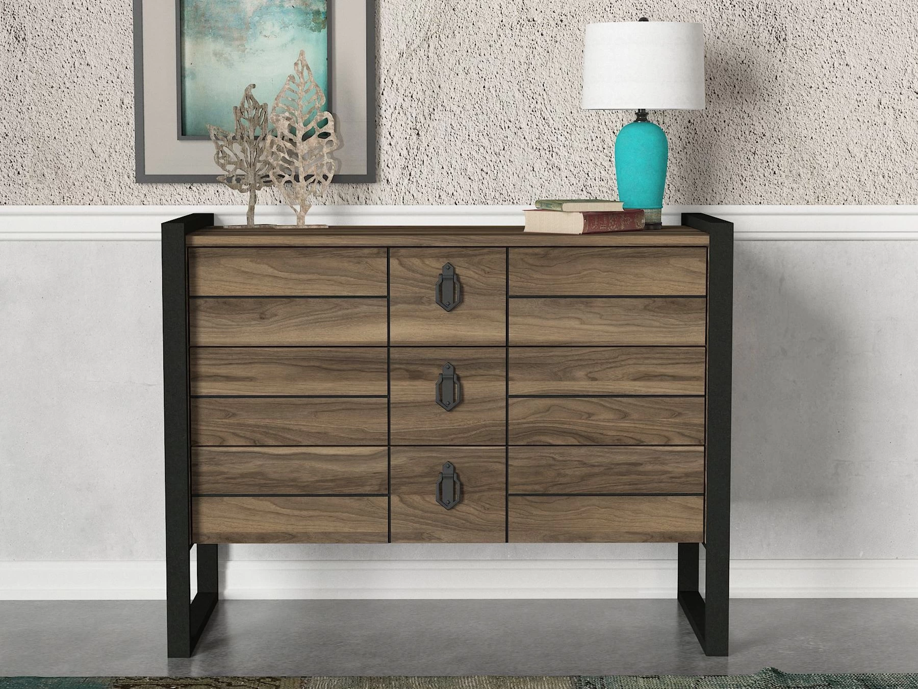 Tera Home Dresser | 18mm Melamine Coated | Metal Frame | 94″ Width | Walnut Black